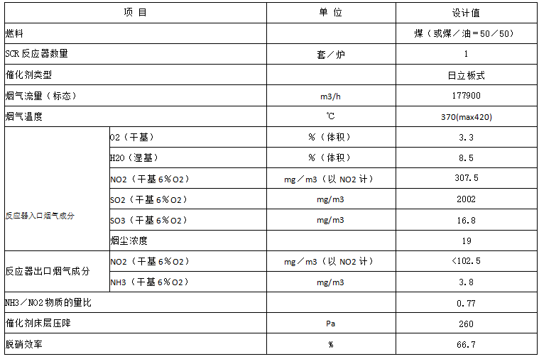 電廠的NOx減排采用爐內低NO2燃燒技術和煙氣脫硝工藝相結合的辦法。爐內減排技術采用PM型低NO2燃燒器加分級燃燒法,減排效率可達65%,排放的NO2濃度在370mg/m3左右(按NO2計)。煙氣脫硝采用選擇性催化還原(SCR)法。